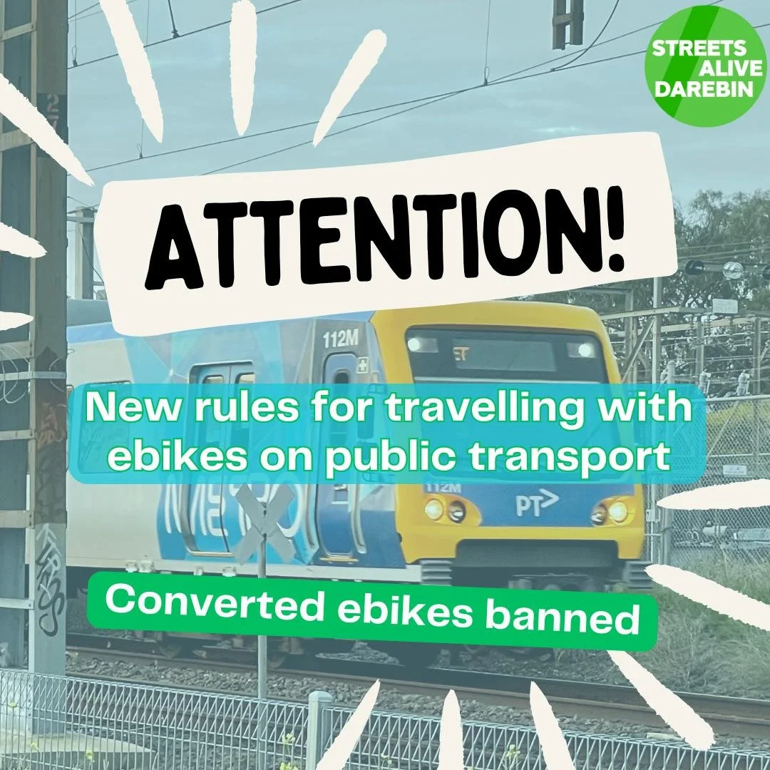 Victorian Government compromises on the proposed e-bike ban on public transport after thousands of submissions from the public see: Conduct on Public Transport Regulations | Engage Victoria and for a great guide on buying an ebikes see: E-bike buying guide | Bicycle Network